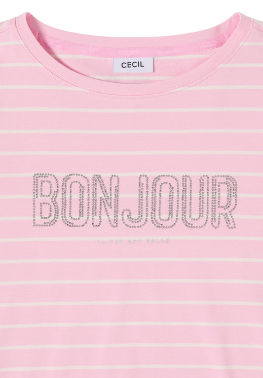 CECIL - T-Shirt mit Schmuckstein Wording - Farbe: light blush rose
