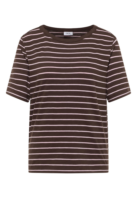CECIL - T-Shirt mit Boatneck und Streifen - Farbe: macchiato brown