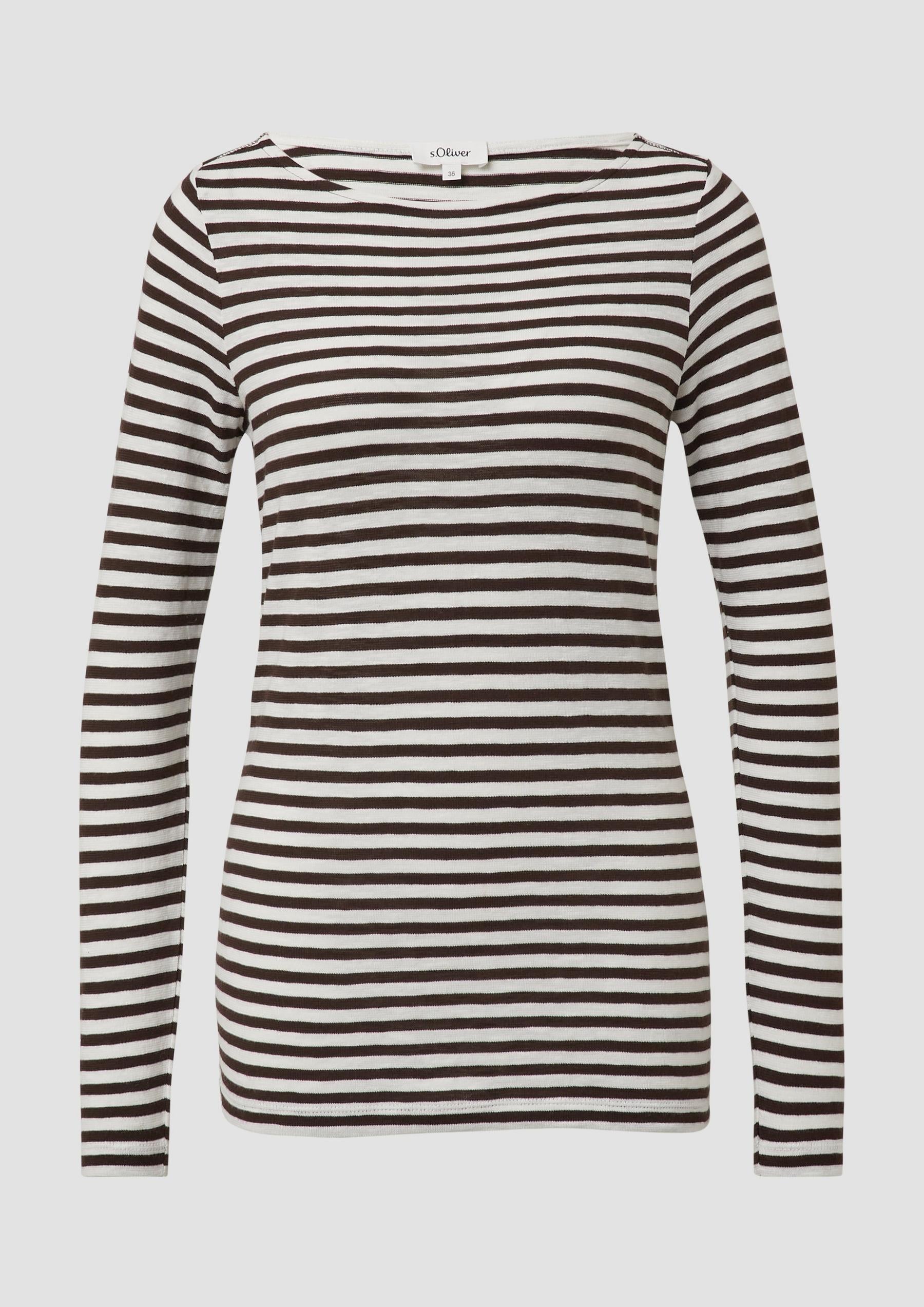 s.Oliver - Longsleeve in Streifen-Optik mit U-Bootausschnitt - Farbe: Dunkelbraun
