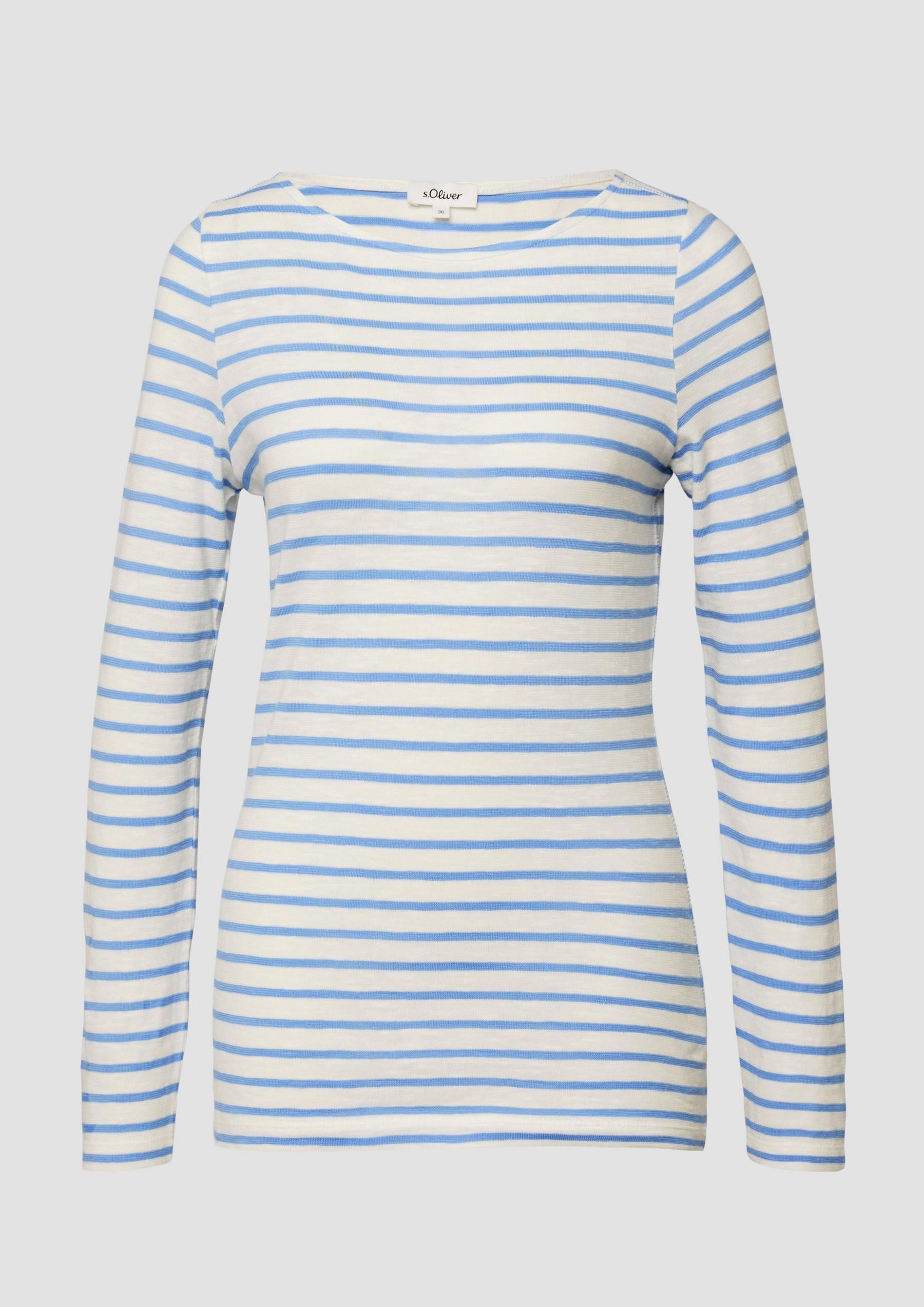 s.Oliver - Gestreiftes Langarmshirt aus Flammgarm mit U-Boot-Ausschnitt - Farbe: Arktisblau