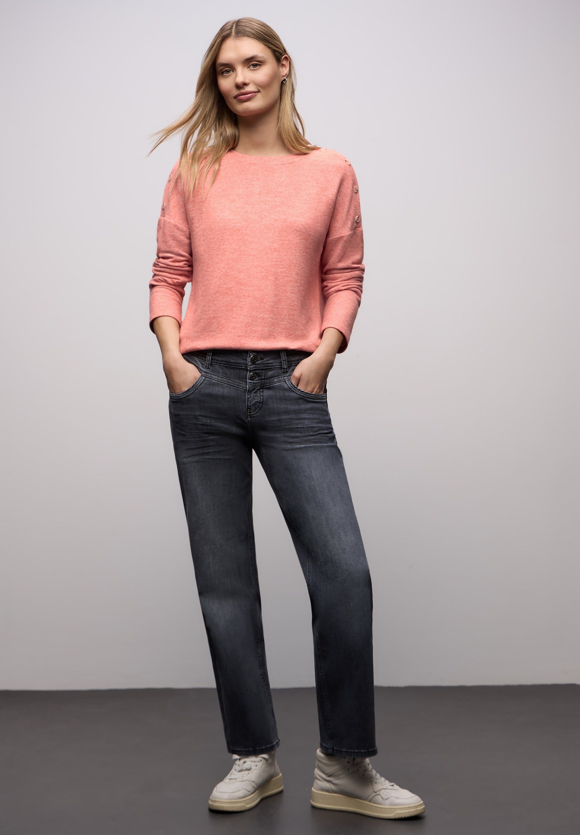 Mit Street One entscheiden Sie sich für Mode, die moderne Weiblichkeit und Alltagstauglichkeit miteinander verbindet. Die Marke ist bekannt für ihre vielfältige Farbpalette und moderne Designs, die sich leicht kombinieren lassen, ohne Kompromisse bei Komfort oder Qualität einzugehen.