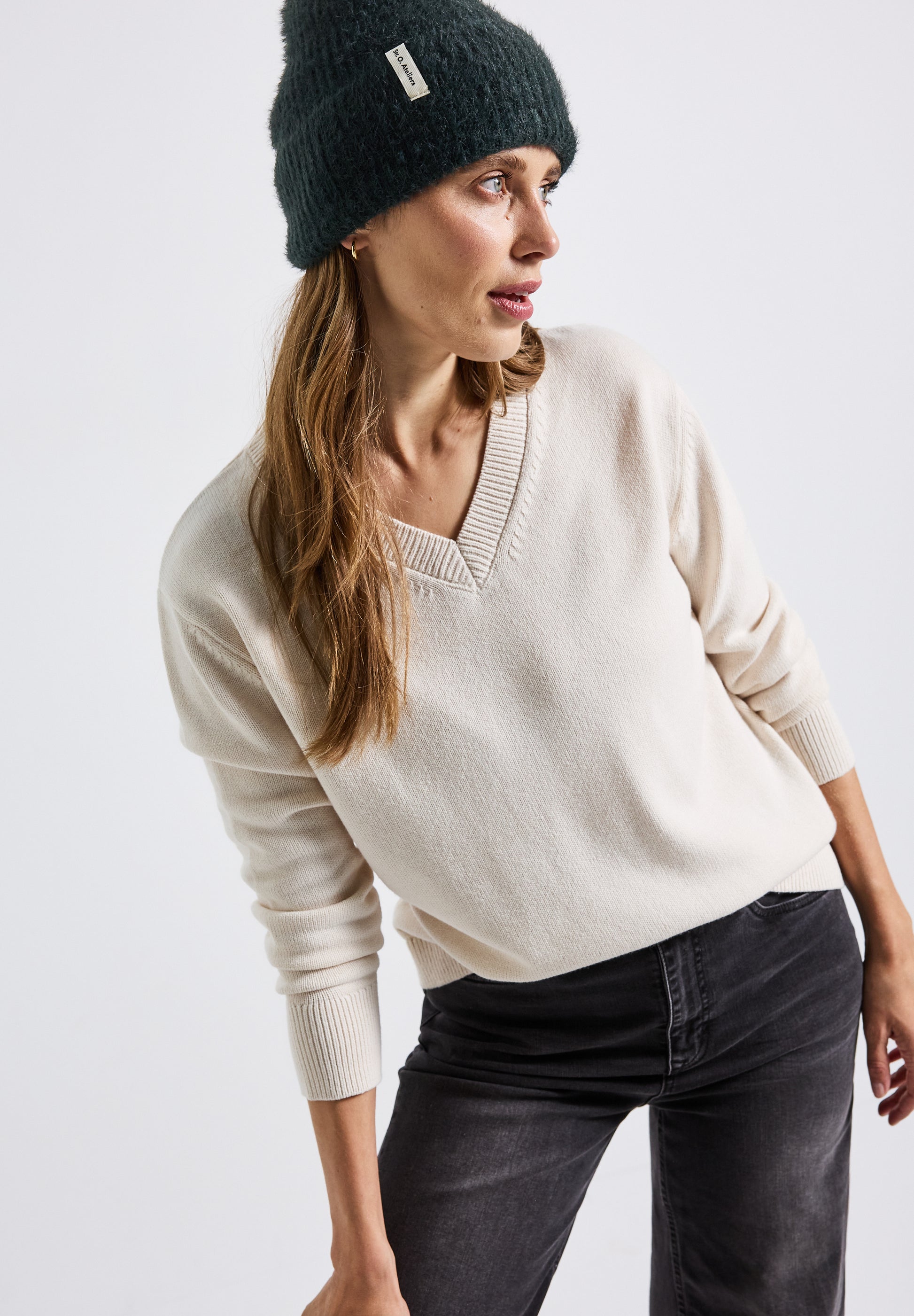 Kombiniere die Beanie mit einem passenden Schal oder Mantel von Street One. Das frische Grün bringt Farbe in deine Winterlooks und macht jedes Outfit zum Hingucker.