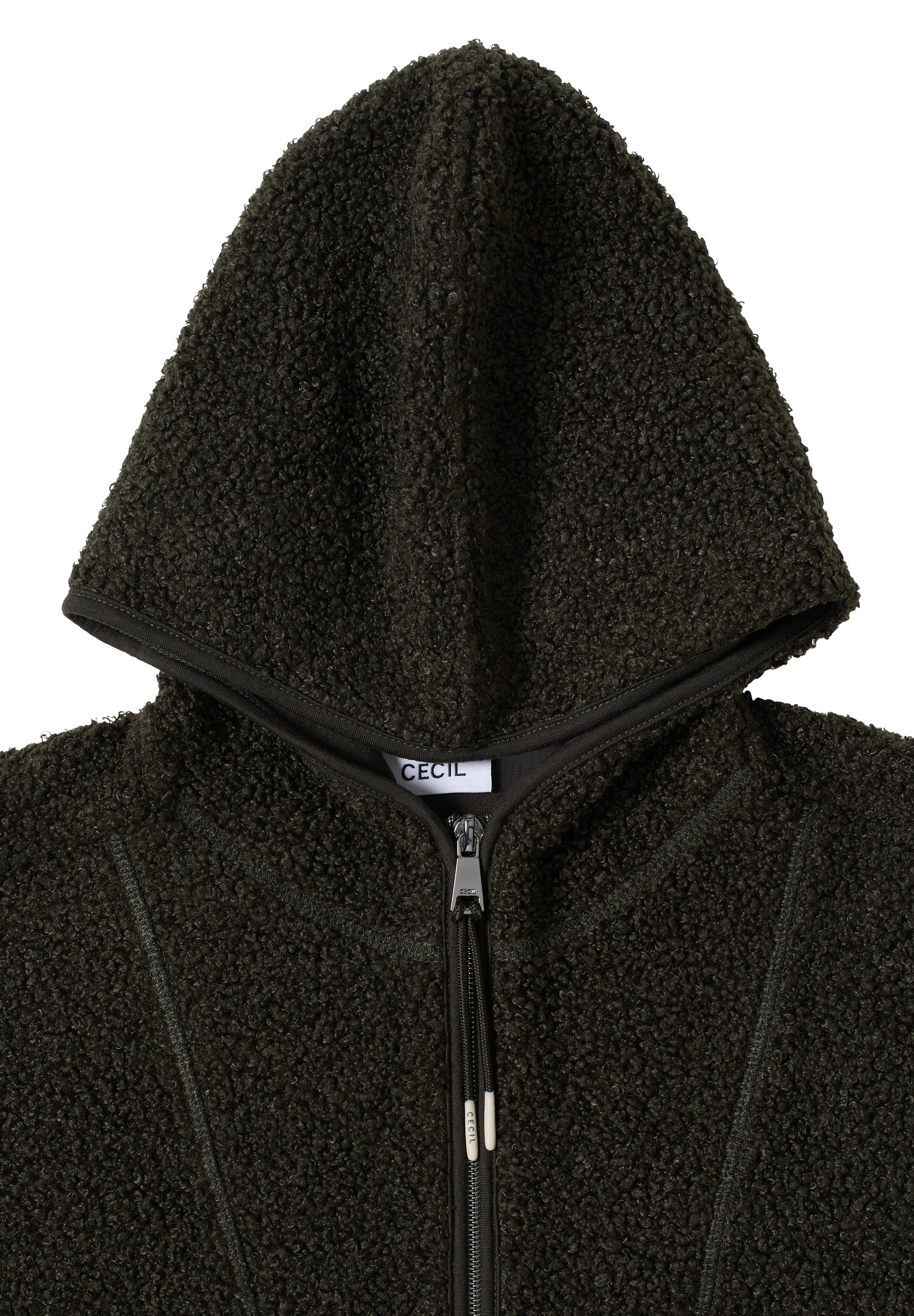 Die CECIL Teddy Troyer Weste in elegantem raw khaki überzeugt mit ihrem kuscheligen Teddy-Material und femininem Schnitt. Der Troyerkragen sorgt für einen sportiv-eleganten Akzent und angenehme Wärme, während das weiche Material für hohen Tragekomfort sorgt. Vielseitig kombinierbar ist die Weste ideal für Lagenlooks im Alltag.