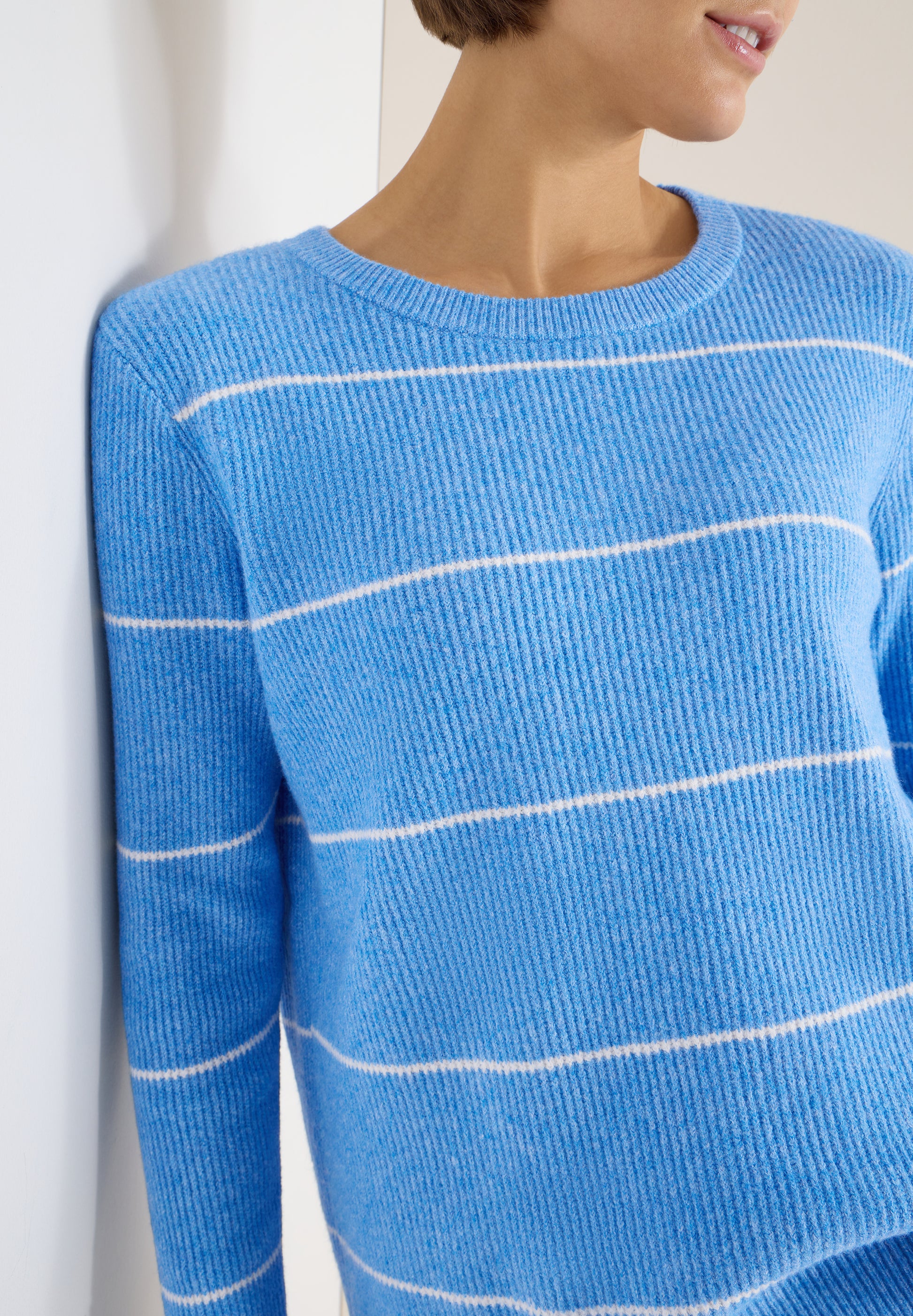 CECIL - Gestreifter Strukturpullover - Farbe: fountain blue melange