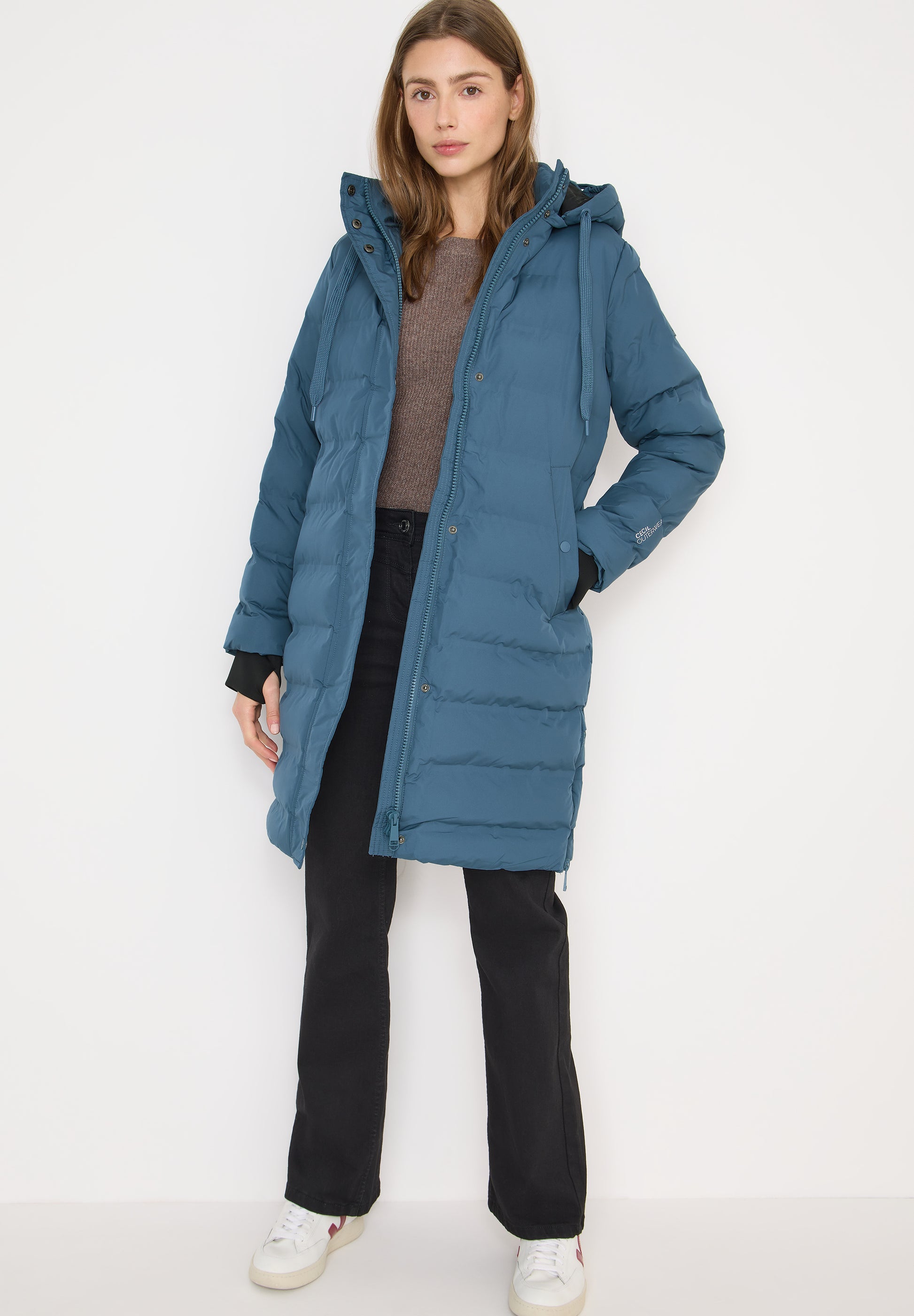 Der Mantel lässt sich ideal zu Jeans, sportiven Hosen oder Stricklooks kombinieren. Mit CECIL Pullovern oder Hoodies entsteht ein lässiger Alltagslook, der Funktion und Stil perfekt vereint.