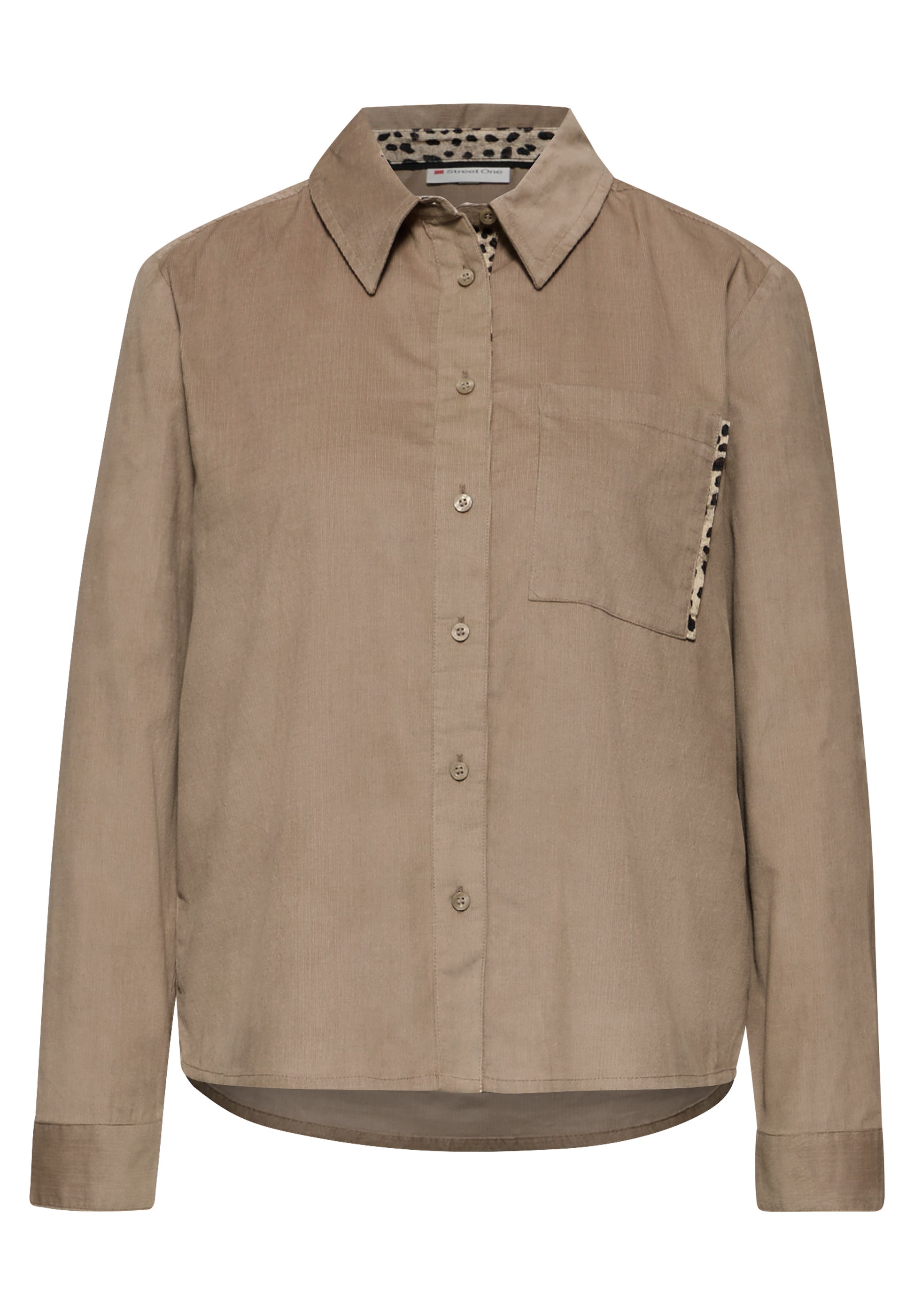 Die Street One Cordbluse in Flowing Beige begeistert mit ihrem modischen Look und liebevollen Details. Die Knopfleiste, der klassische Hemdkragen und die Brusttasche verleihen der Bluse einen zeitlosen Charakter, während Tapedetails im Leo-Look für einen trendigen Eyecatcher sorgen. In weicher reiner Baumwolle gefertigt, trägt sie sich angenehm und natürlich – perfekt für Büro, Freizeit oder City.